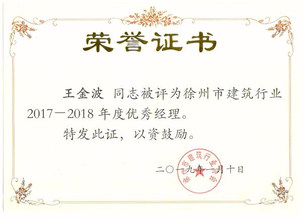 2019年元月20日下午,徐州市建筑行業(yè)協(xié)會在市人民舞臺隆重召開2019年創(chuàng)新發(fā)展論壇暨表彰大會。中陽集團被授予“優(yōu)秀企業(yè)”榮譽稱號;公司董事長王金波同志被評為“優(yōu)秀企業(yè)經(jīng)理”,青島分公司技術(shù)工人朱樹勇同志被評為“優(yōu)秀農(nóng)民工”。
