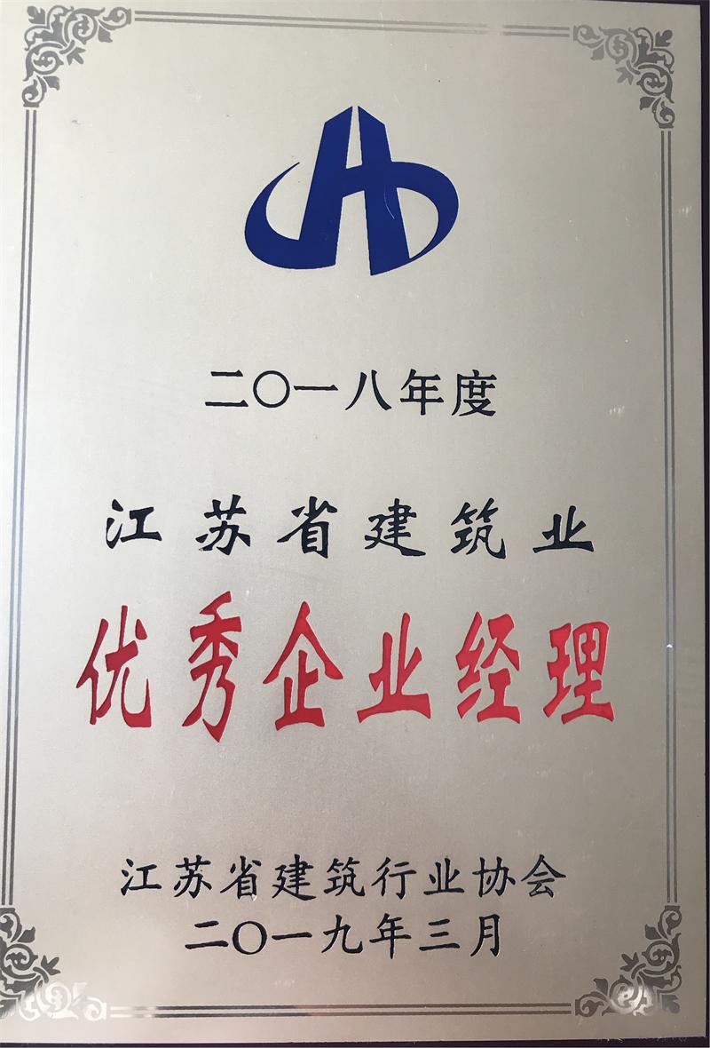 近日,我公司被江蘇省建筑行業(yè)協(xié)會(huì)評(píng)為“2018年度江蘇省建筑業(yè)優(yōu)秀企業(yè)”,王長(zhǎng)宏董事長(zhǎng)被評(píng)為“2018年度江蘇省建筑業(yè)優(yōu)秀企業(yè)經(jīng)理”。